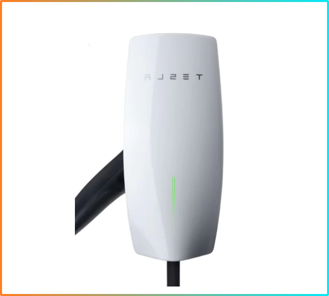 Den smarta Tesla Laddbox är Wi-Fi-ansluten för trådlösa firmwareuppdateringar. Teslas laddkontakt öppnas enkelt från anslutningskabeln. Laddboxen kan ge dig upp till 71 km räckvidd per timme laddning med upp till 22 kW styrka.